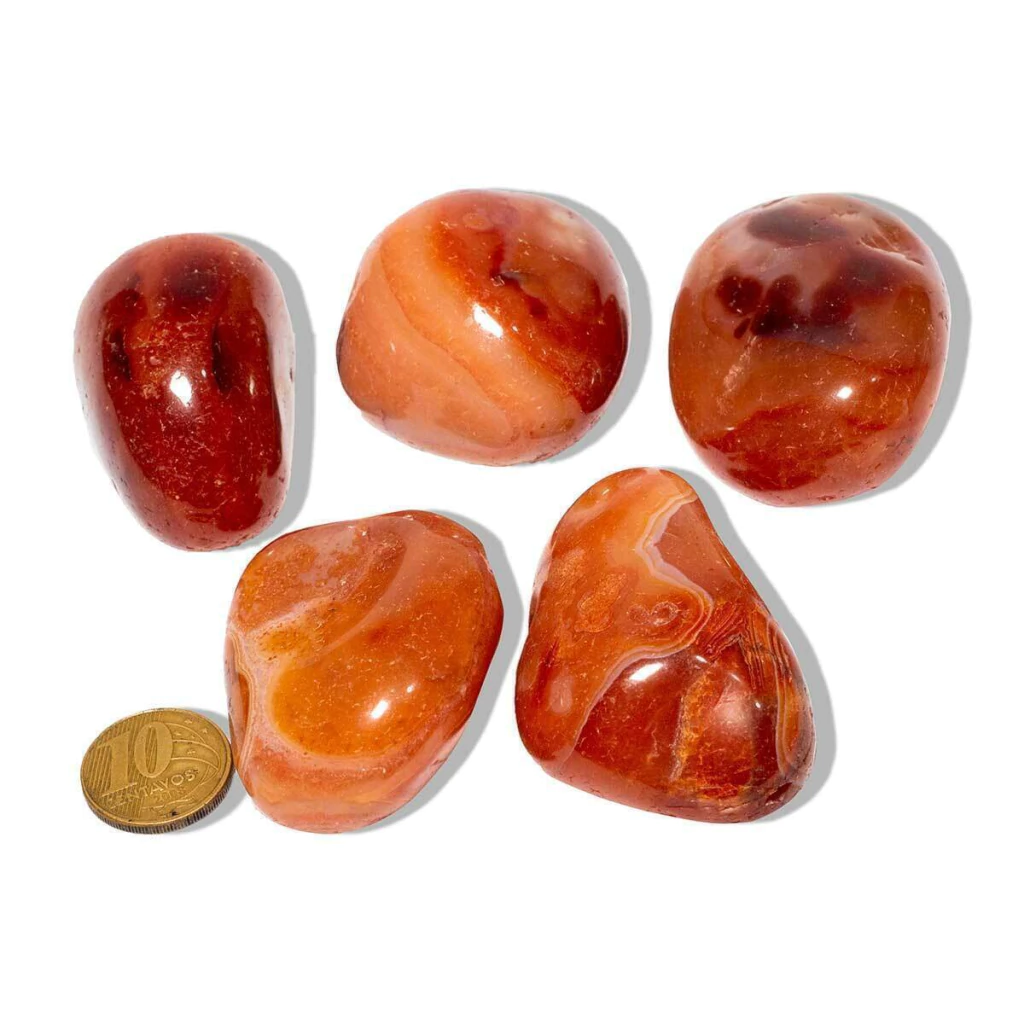 Ágata Vermelha: A Ágata Vermelha ajuda em casos de enfermidades da pele, protegendo-a de enfisemas, doenças dos olhos e deficiência de visão. Nos casos de excesso de exigência dos olhos, recomenda-se colocar sobre eles “discos de ágata” previamente aquecidos pelo sol. A Ágata Vermelha fortalece os rins, ajudando em casos de inflamação e cólicas renais. Além disso, atua como uma guardiã dos nascituros, prevenindo doenças da mãe e da criança.