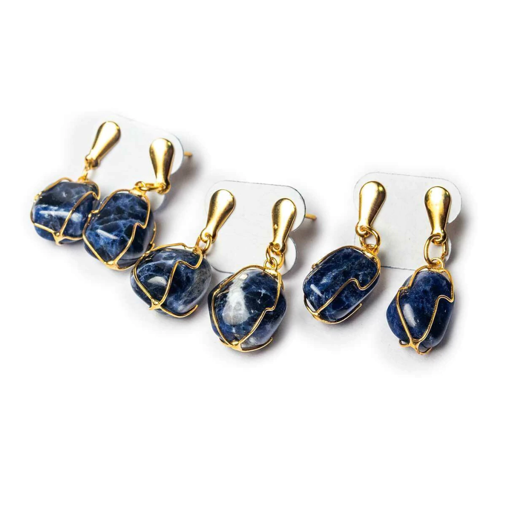 Este brinco combina os tons profundos e marcantes da Sodalita Azul rolada e polida com um design chique e artesanal: um delicado cesto amarradinho, montado manualmente. Um acessório com elegância natural, perfeito para quem busca estilo com significado, equilíbrio e boas vibrações.