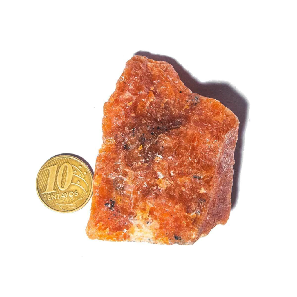 Cada unidade apresenta formato bruto e variações únicas, preservando toda a essência da natureza. A cor alaranjada é resultado da presença natural de óxido de ferro, o que torna cada pedra especial e única.