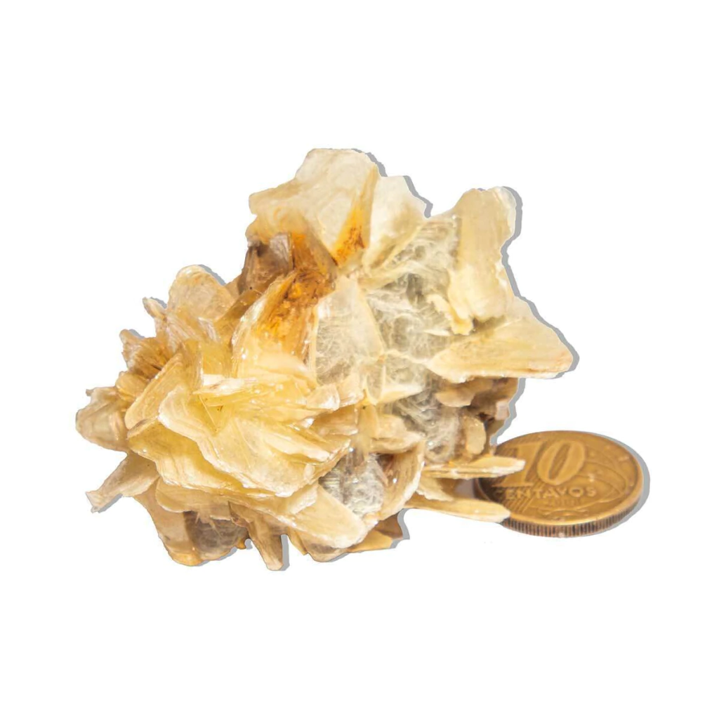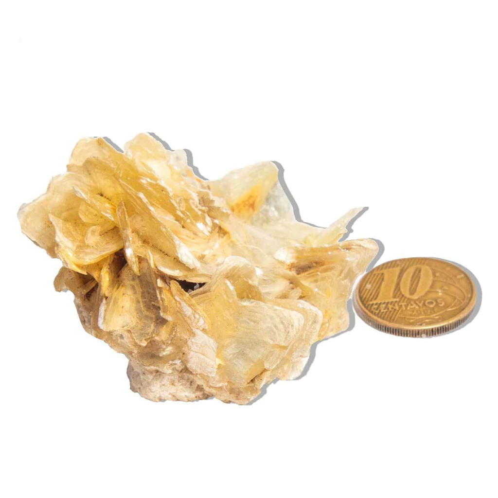 Drusa de Mica Amarela de excelente qualidade, com aglomerados naturais e algumas incrustações de cristais de quartzo (dependendo do exemplar, conforme foto). Este mineral autêntico é extraído da região de Araçuai, MG, e possui características únicas de brilho e cor.