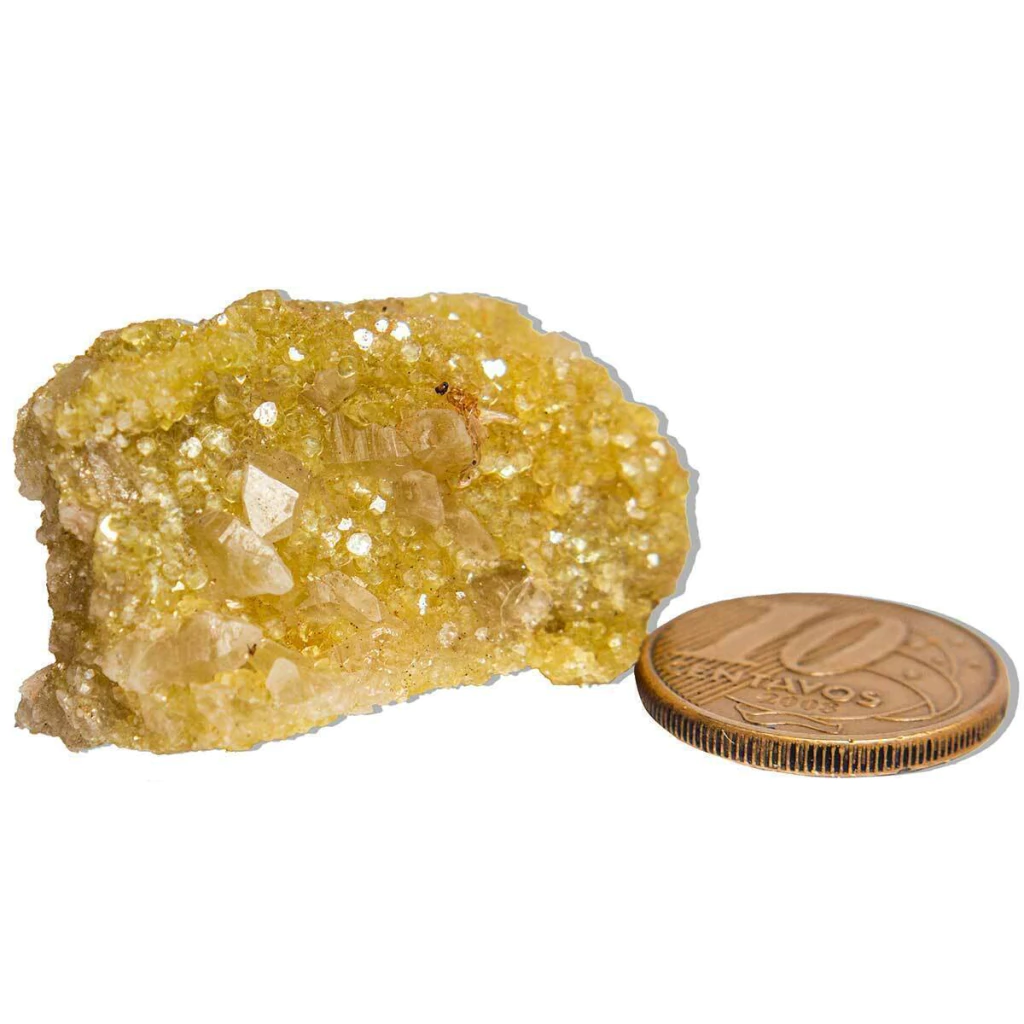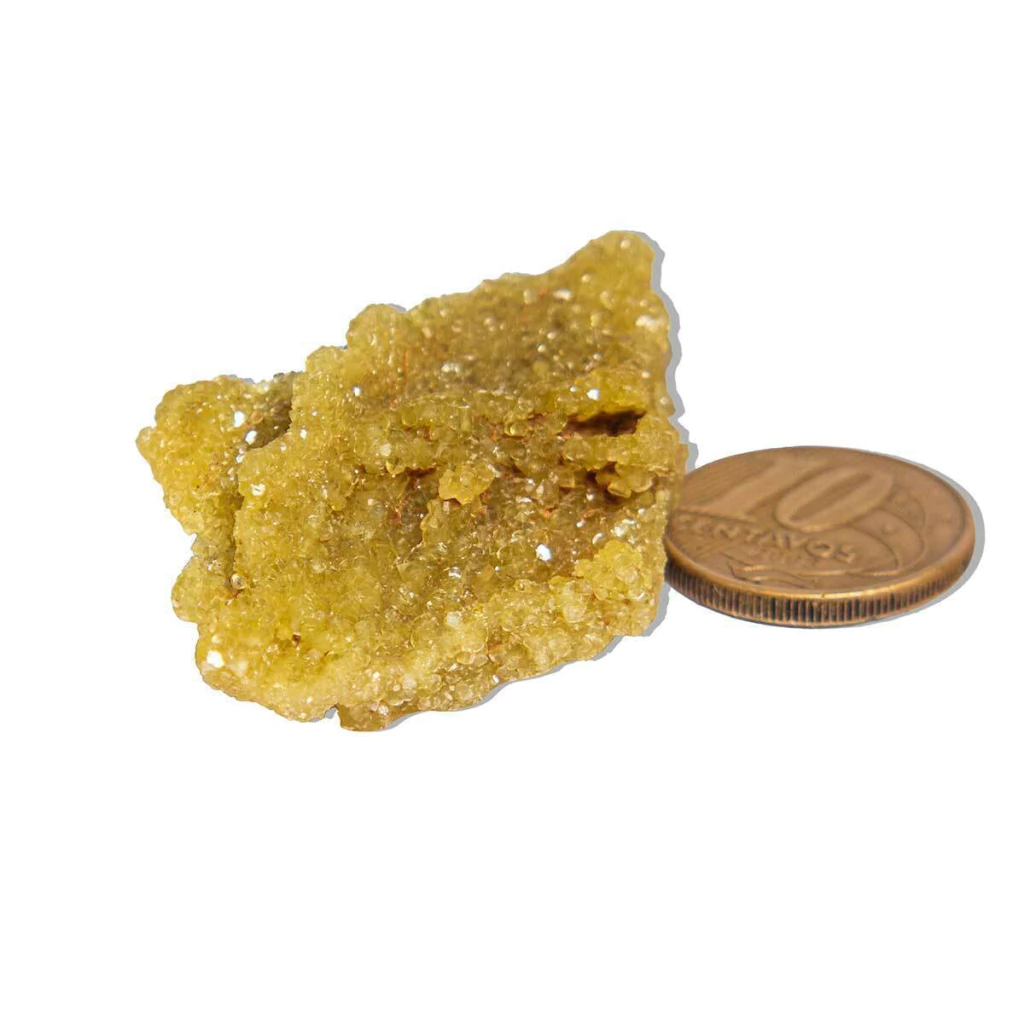 Chapa de Mica Amarela de excelente qualidade, com aglomerados naturais e algumas incrustações de cristais de quartzo (dependendo do exemplar, conforme foto). Este mineral autêntico é extraído da região de Araçuai, MG, e possui características únicas de brilho e cor.
