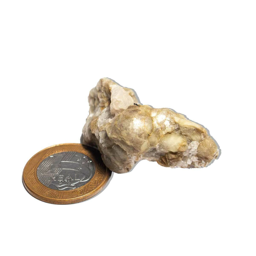 Drusa Moscovita com Mica de qualidade médiana, com aglomerados naturais e algumas incrustações de cristais de quartzo (dependendo do exemplar, conforme foto). Este mineral autêntico é extraído da região de Araçuai, MG, e possui características únicas de brilho e cor.