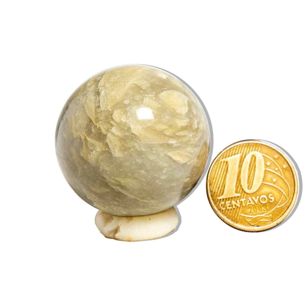 Por ser uma pedra natural, cada esfera de Jadeita é única, podendo apresentar variações de tonalidade e grafismo. Pequenas inclusões, que podem parecer fissuras, são características normais de minerais autênticos extraídos do garimpo. Para manter a beleza da pedra, é recomendado hidratá-la com óleo mineral.