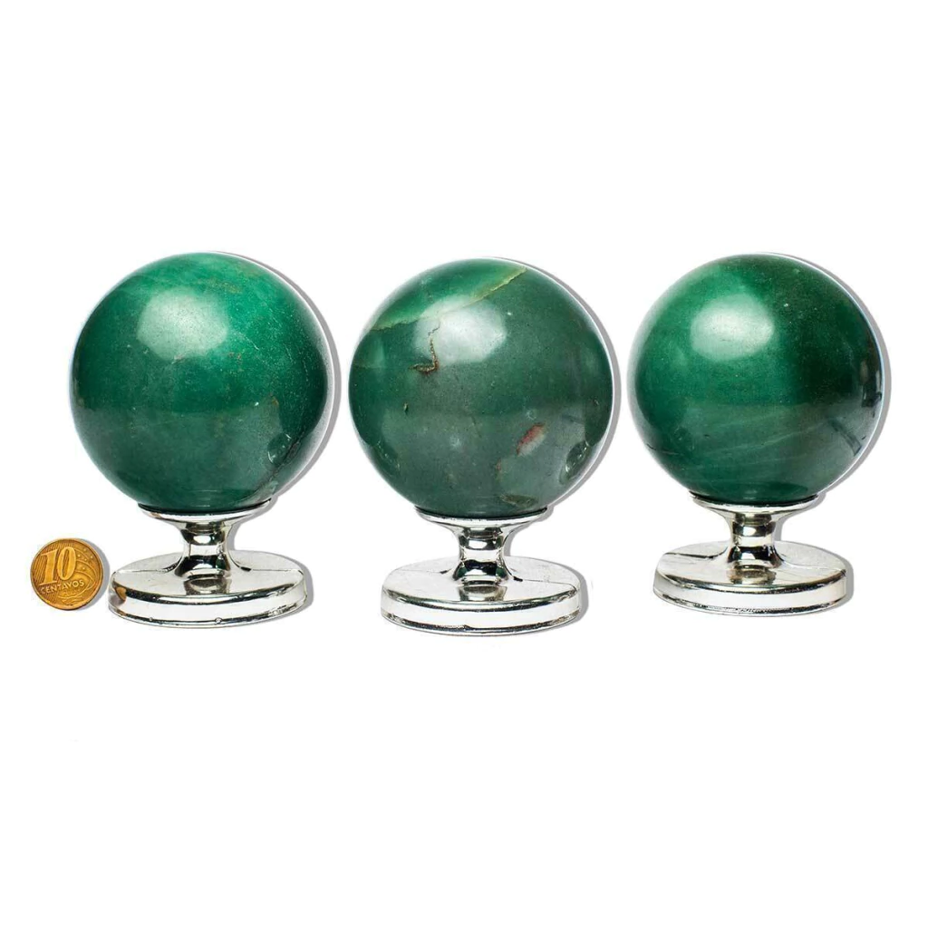 Cada esfera é única. As diferenças de tonalidade, padrões internos, forma e pequenas imperfeições na superfície são características próprias das pedras naturais. Esses detalhes comprovam sua autenticidade e origem mineral. Algumas peças recebem uma leve hidratação com óleo mineral para destacar ainda mais a cor e o brilho natural da pedra.