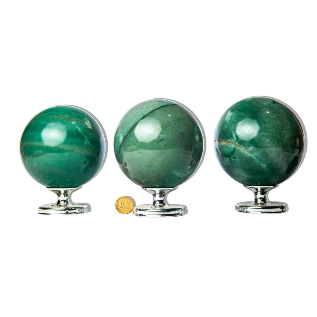 Cada esfera é única. As diferenças de tonalidade, padrões internos, forma e pequenas imperfeições na superfície são características próprias das pedras naturais. Esses detalhes comprovam sua autenticidade e origem mineral. Algumas peças recebem uma leve hidratação com óleo mineral para destacar ainda mais a cor e o brilho natural da pedra.