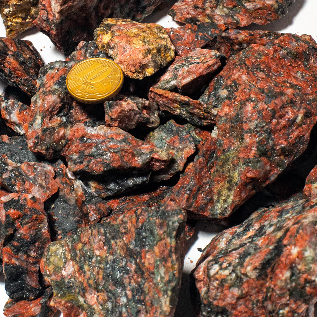 Tamanho das Pedras: De 10mm a 70mm, tamanhos variados (podendo conter peças um pouco maiores ou menores)