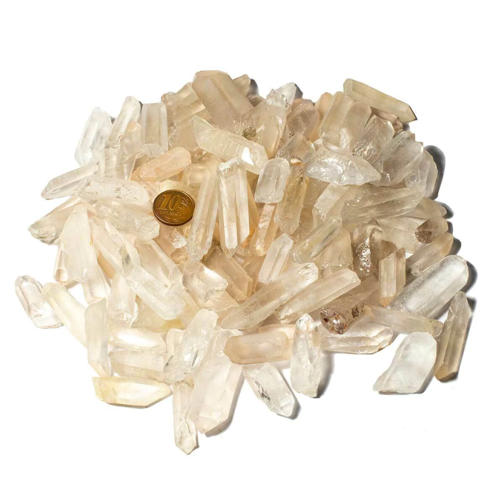 Pacote com 1 kg de pedras naturais lapidadas em formato ponta sextavada, com variedade de cores, tamanhos e tipos. Ideal para revenda, kits esotéricos, colecionadores, decoração ou uso em terapias com cristais.