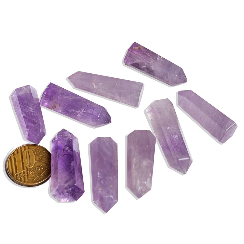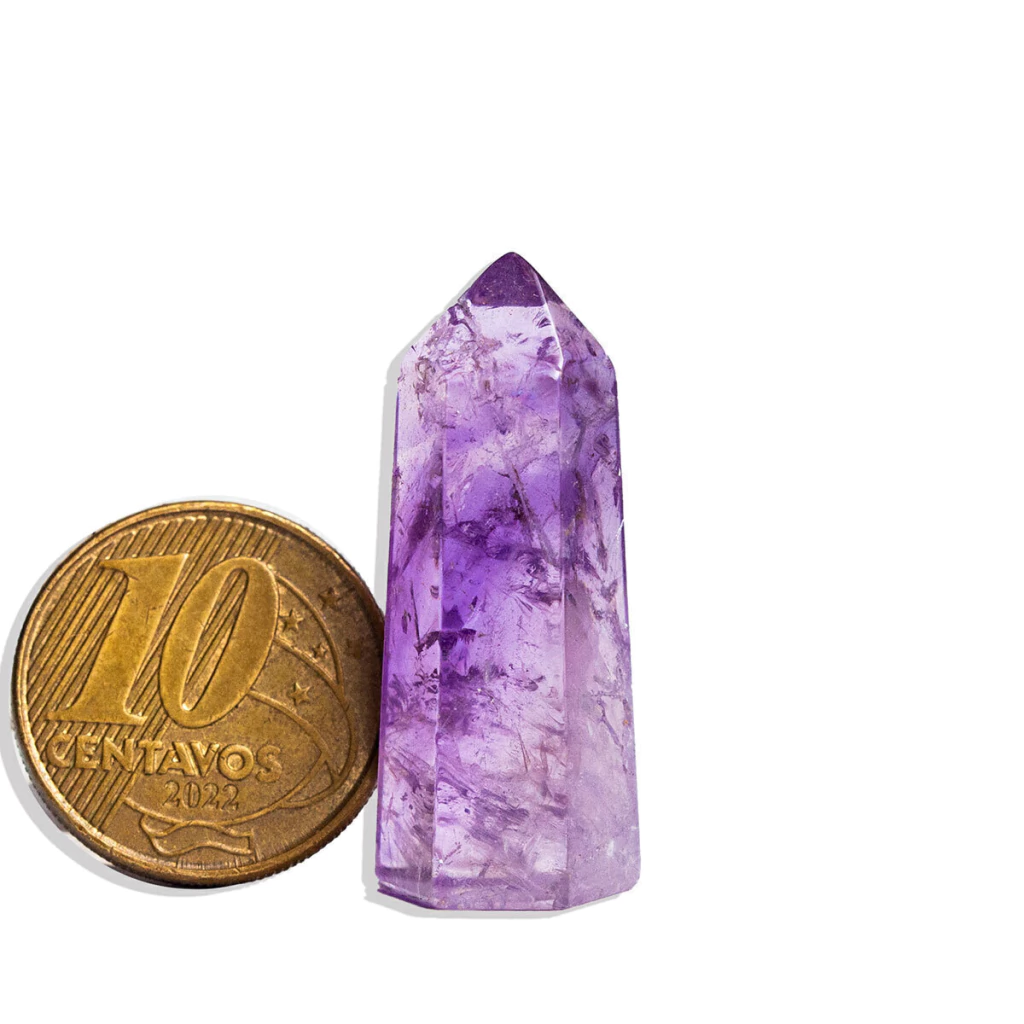 Mini Cristal Ametista Gerador de energia Pontinha com lapidação e bom brilho pedra Natural muito utilizado em mandalas, energização por canalizar a energia orgone