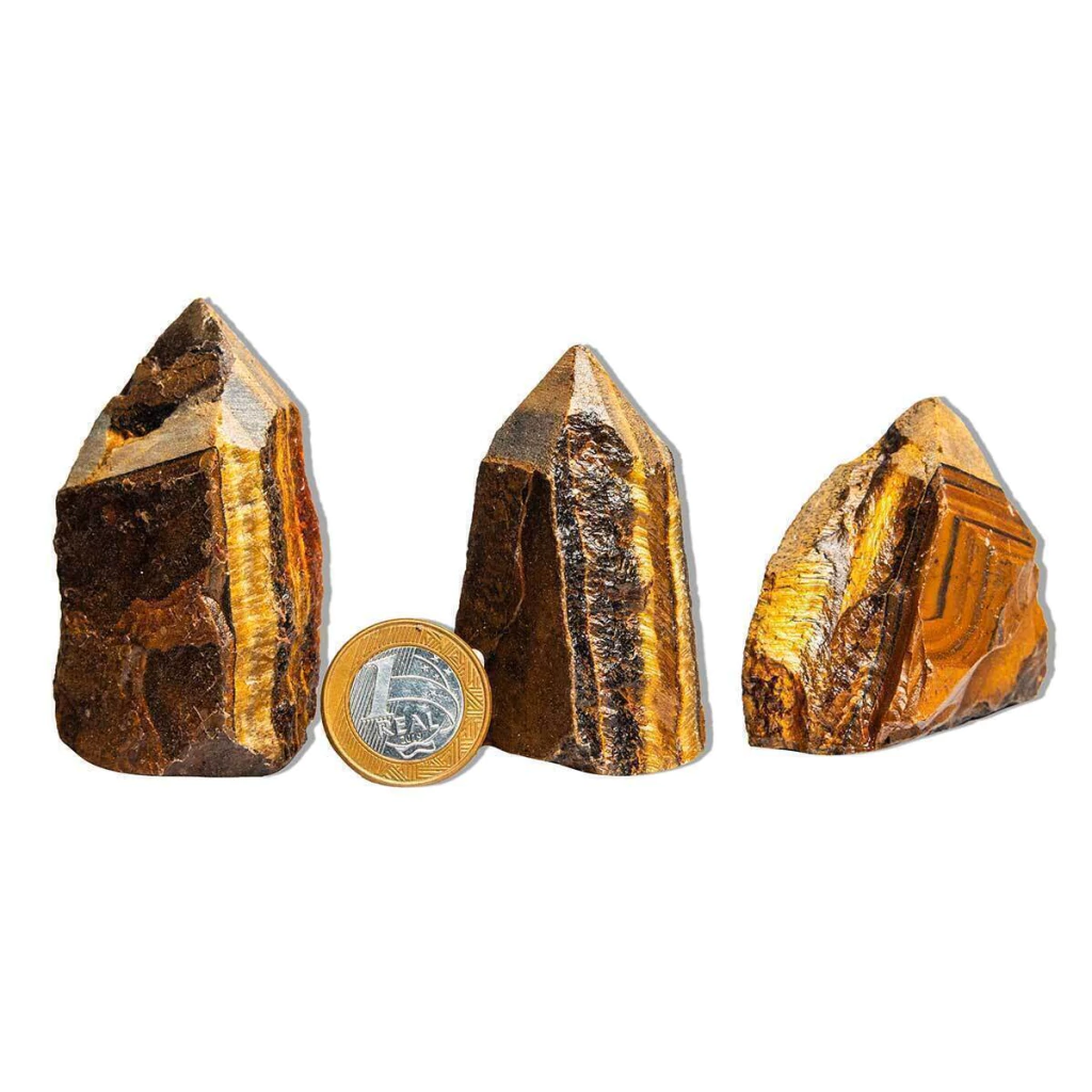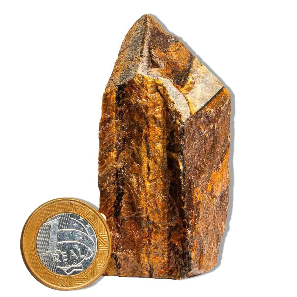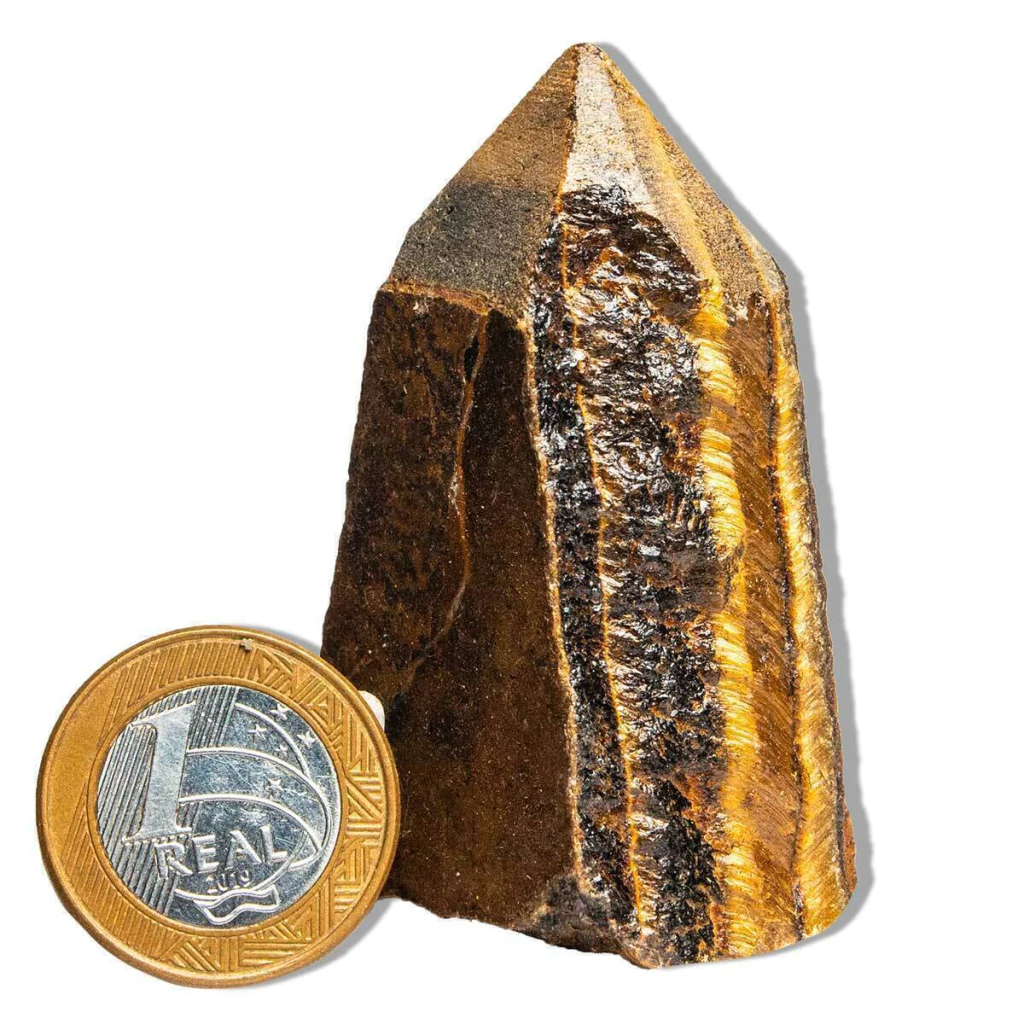Olho de Tigre Bruto com Base e Bico Serrado – Pedra Natural para Força Interior e Proteção Energética