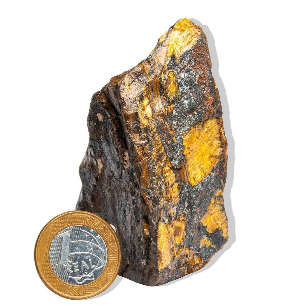 Descubra o magnetismo poderoso do Olho de Tigre Bruto, uma pedra que combina beleza terrosa, energia ancestral e significado espiritual em sua forma mais bruta e impactante. Com faixas naturais em tons dourados, marrons e bronze metálico, essa pedra exibe um brilho sedoso que remete ao olhar penetrante do animal que lhe dá nome — símbolo de coragem, foco e proteção. A base serrada garante estabilidade para exposição vertical, tornando-a ideal para quem busca uma peça de presença marcante, seja para composições decorativas, seja para fins terapêuticos ou espirituais.