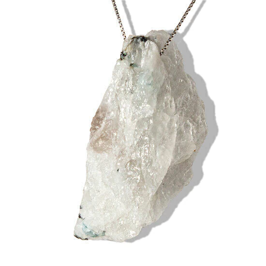 Obs: Pode ser necessário quebrar a pedra para visualizar sua adularescência (reflexo com tons brancos e azuis da pedra), mas não é recomendado pois pode estragar o furo vazado.