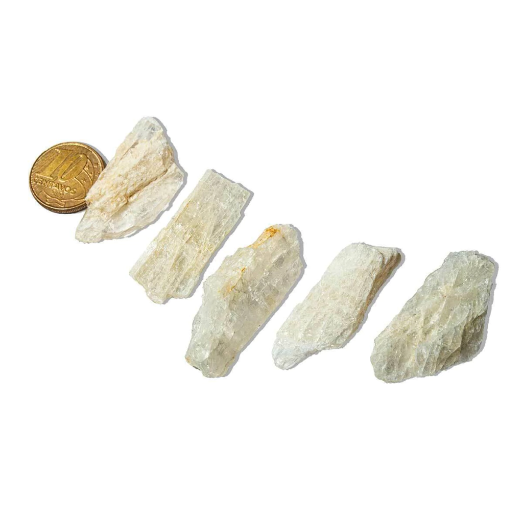 Por se tratar de um mineral natural, as peças apresentam variações de formato, tonalidade e textura. Podem conter áreas rústicas, fissuras naturais ou superfícies mais lisas, características típicas da Petalita em estado bruto.