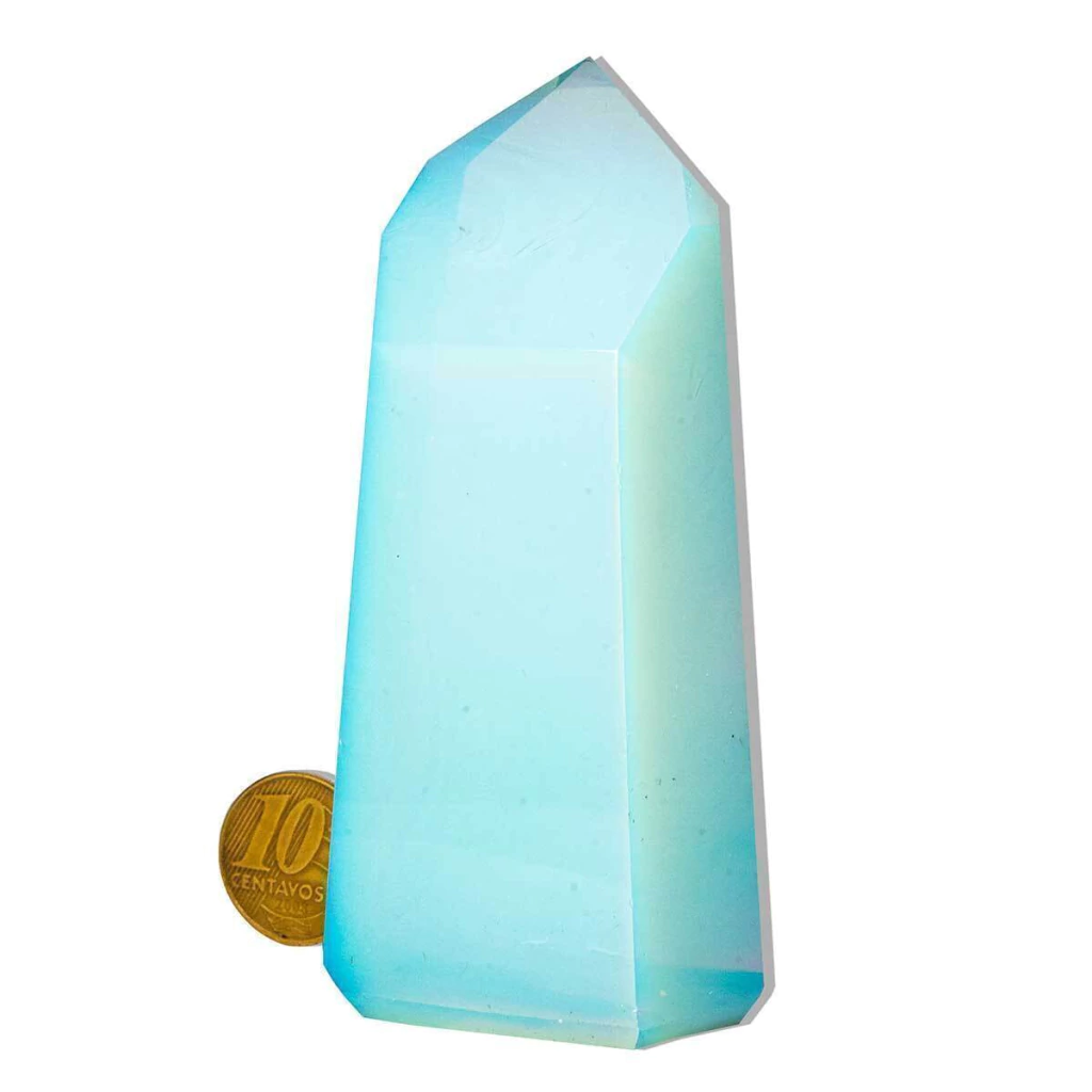 Este é um mineral reconstituído em laboratório, feito pelo ser humano, e não é uma pedra natural. Visualmente parecendo à Pedra Opalina verdadeira. Compre somente se estiver ciente dessas características.