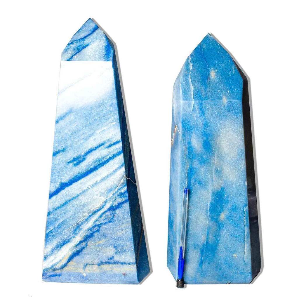 Observação: Por se tratar de um cristal natural, cada ponta de Quartzo Azul é única. Pode apresentar variações de tom, veios e pequenas imperfeições — marcas autênticas que revelam sua origem natural e tornam cada peça exclusiva.