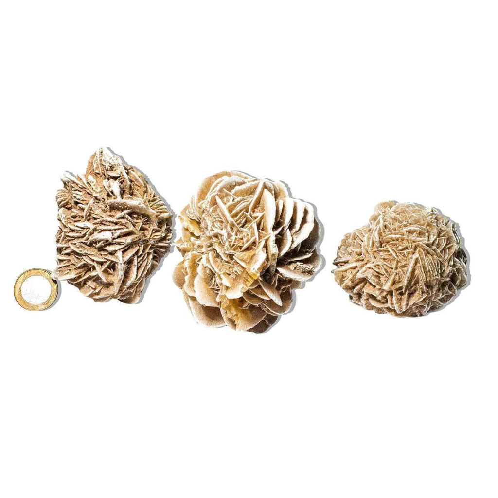 Formação Mineral Natural: Composta por gipsita e areia (sulfato de cálcio), a Rosa do Deserto se forma em áreas áridas, quando águas subterrâneas evaporam e deixam para trás cristais minerais moldados pela natureza.