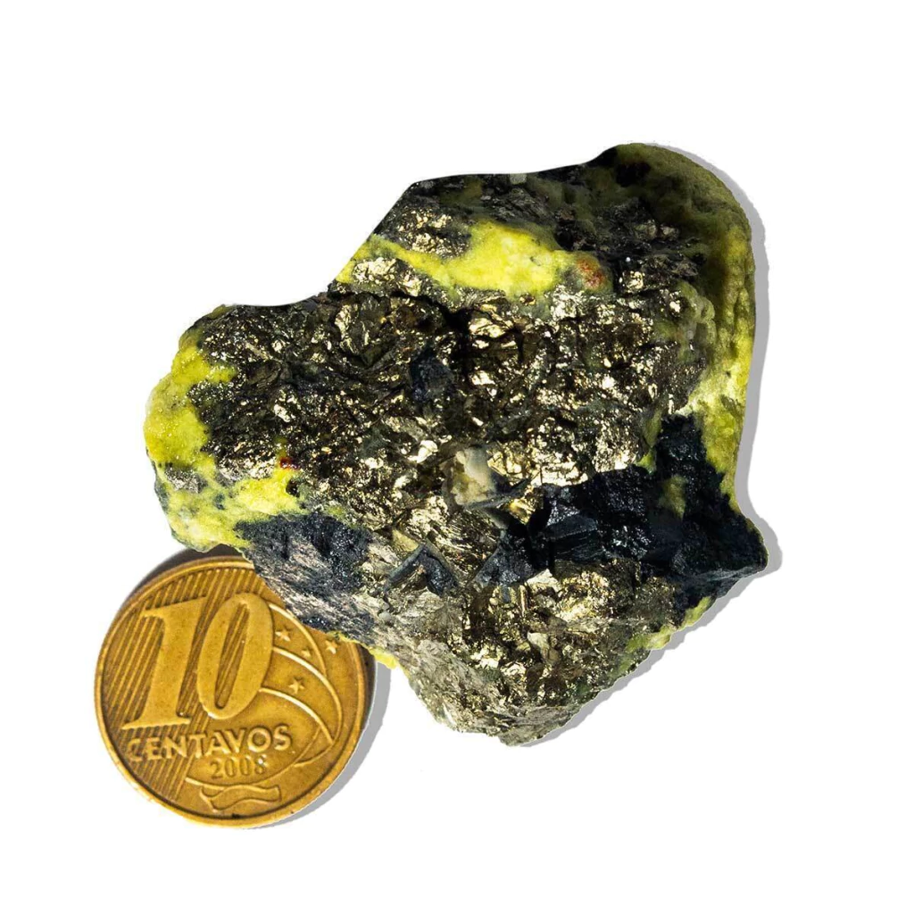 Adquira uma linda Serpentinita Verde Incrustada com Pirita , em formato bruto, perfeito para quem está começando sua coleção de minerais ou já é um apaixonado por pedras naturais.