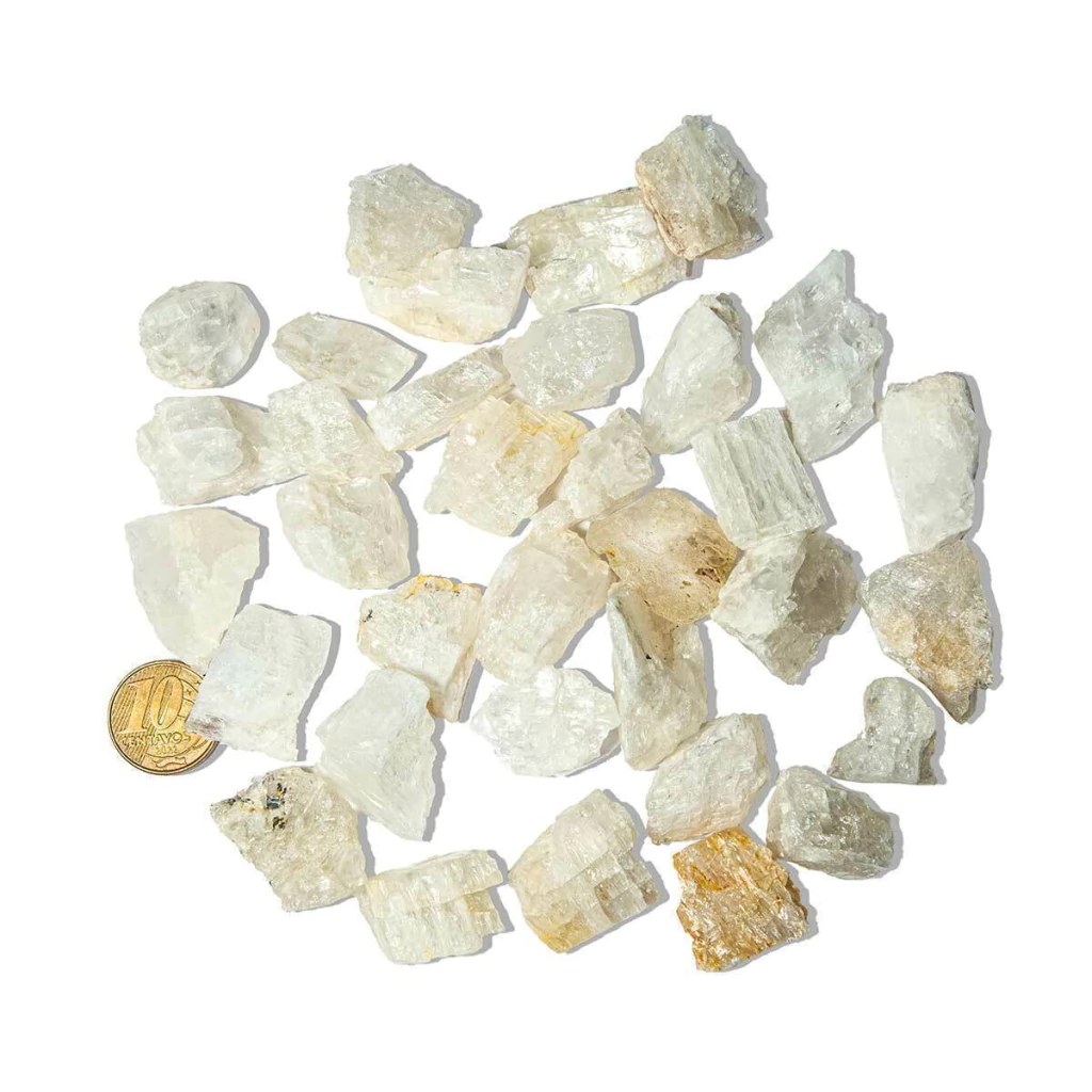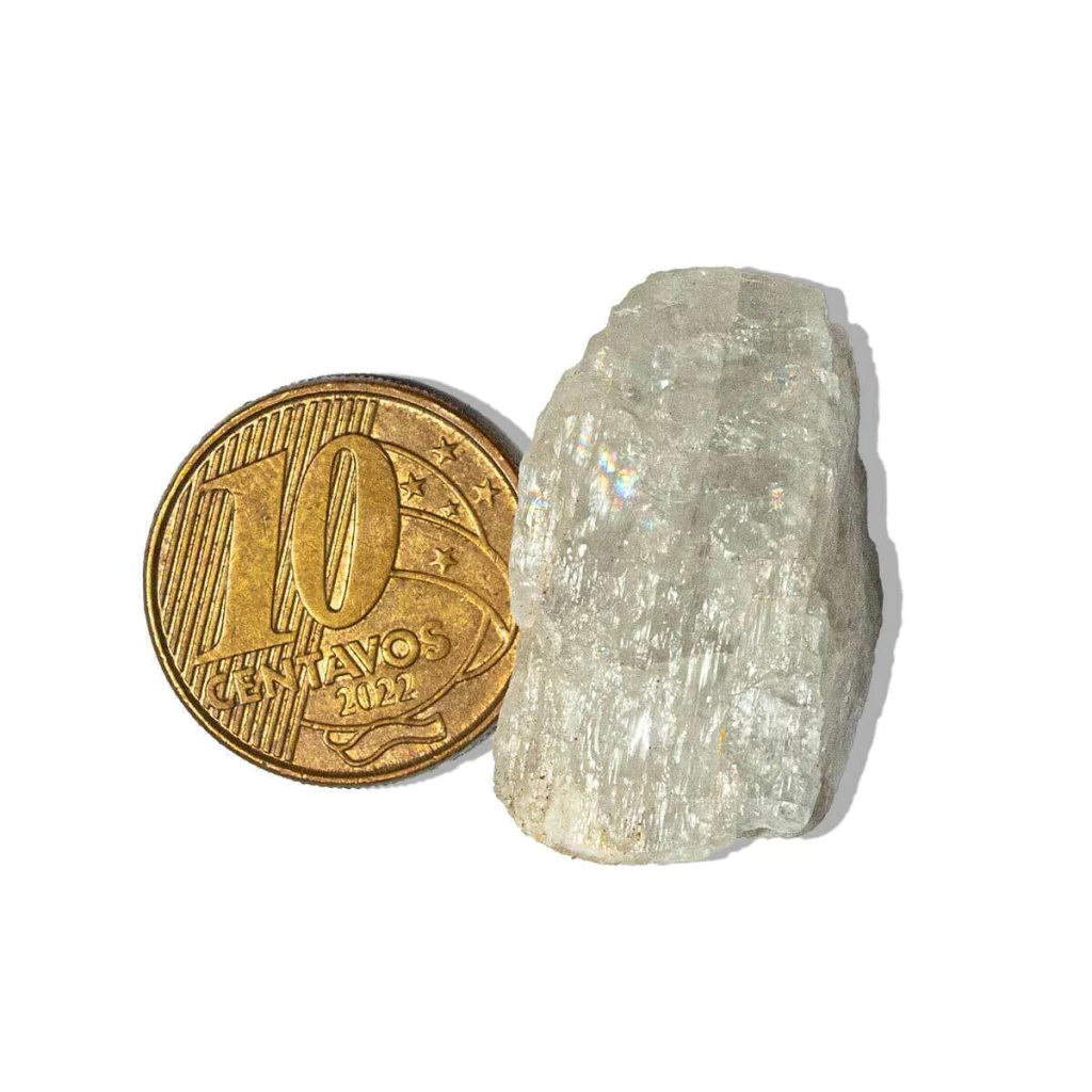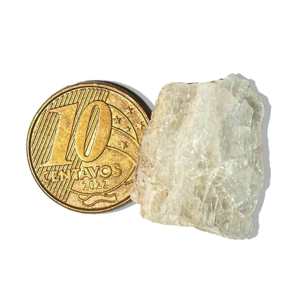 Por se tratar de um mineral natural, as peças apresentam variações de formato, tonalidade e textura. Podem conter áreas rústicas, fissuras naturais ou superfícies mais lisas, características típicas da Petalita em estado bruto.