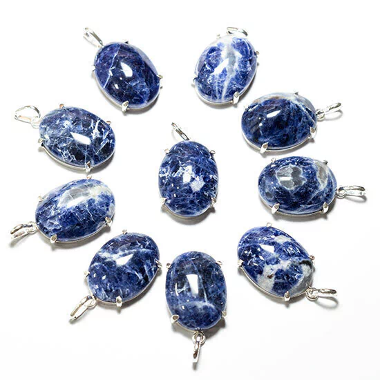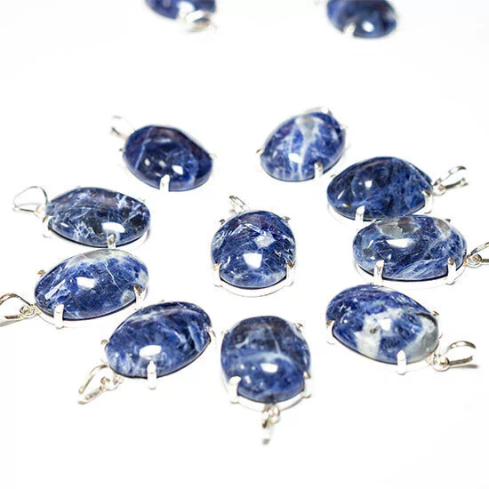 03 Pingente Cabochão 24mm Sodalita Azul Garra Prata 950 ATACADO, Cabochão Oval Lisa Pedra Sodalita Azul Montagem na garra com perinha em Prata 950 para passar o cordão Pedra Genuina com origem garimpo lapidação e montagem manual