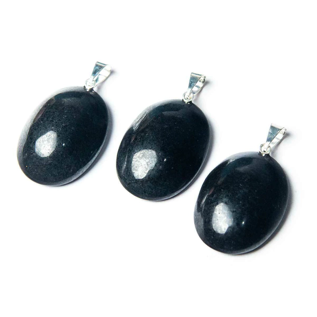 Pingente Cabochão Pedra Quartzo Preto, Lapidação Cabochão Oval, mineral de garimpo pedra com intenso cor Preto, Quartzo natural