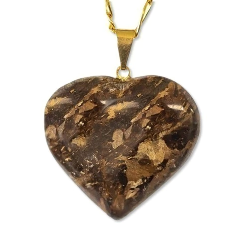 Pingente coração pedra BRONZITA natural em classificação boa qualidade, vai montado com pino e perinha banhado em dourado pronto para usar em colar correntinha ou pulseira