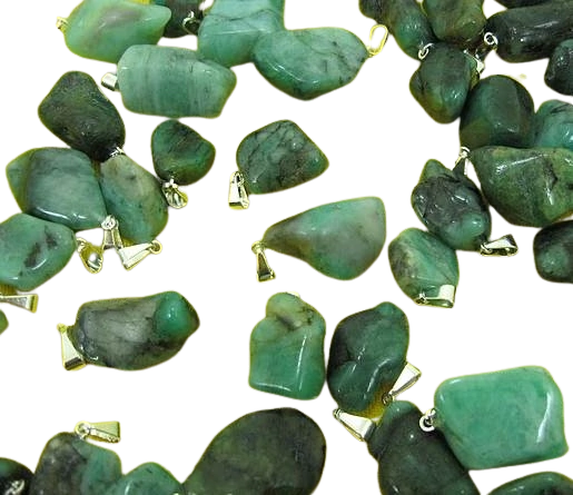 Pingente Pedrinha rolado Esmeralda natural mineral verdadeiro de garimpo exelente preço, lapidação rolado, montagem com pino e perinha Dourado, recomendado para pulseiras ou crianças