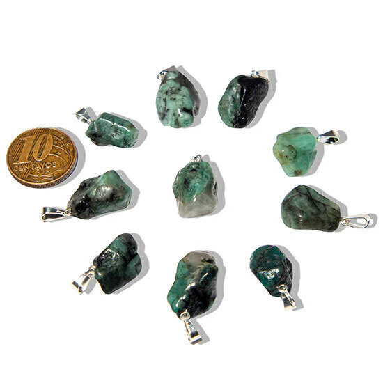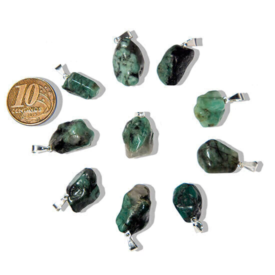 Pingente Pedrinha rolado Esmeralda natural mineral verdadeiro de garimpo exelente preço, lapidação rolado, montagem com pino e perinha PRATEADO, recomendado para pulseiras ou crianças