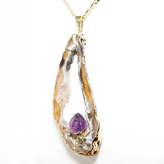 CORTE DAS PEDRAS: Chapa de Geodo com Ponta Ametista Fixa