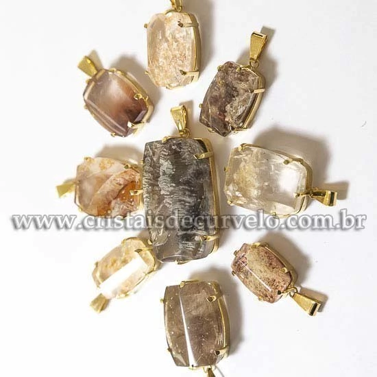 03 Pingente Especial Inclusão Pedra Natural Garra Dourada ATACADO, Pingente Cristal com Inclusão pedra natural de garimpo, cada peça tem em seu interior exclusivo e nenhuma é igual Montagem do Pingente é uma garra com banho dourado + Pedra Genuina com origem garimpo com lapidação e montagem manual, Já vai montado