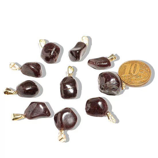 PEDRINHA GRANADA Pingente Pedrinha Rolado GRANADA Natural mineral verdadeiro de garimpo excelente preço, montagem com pino e perinha banhado em prata, recomendado para pulseiras ou crianças