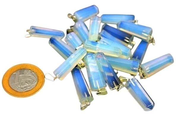 Pingente PONTA Pedra da Lua Opalina lapidação artesanal, montagem e acabamento com pino e presilha em banho flash prateado, ideal para colar e pulseira