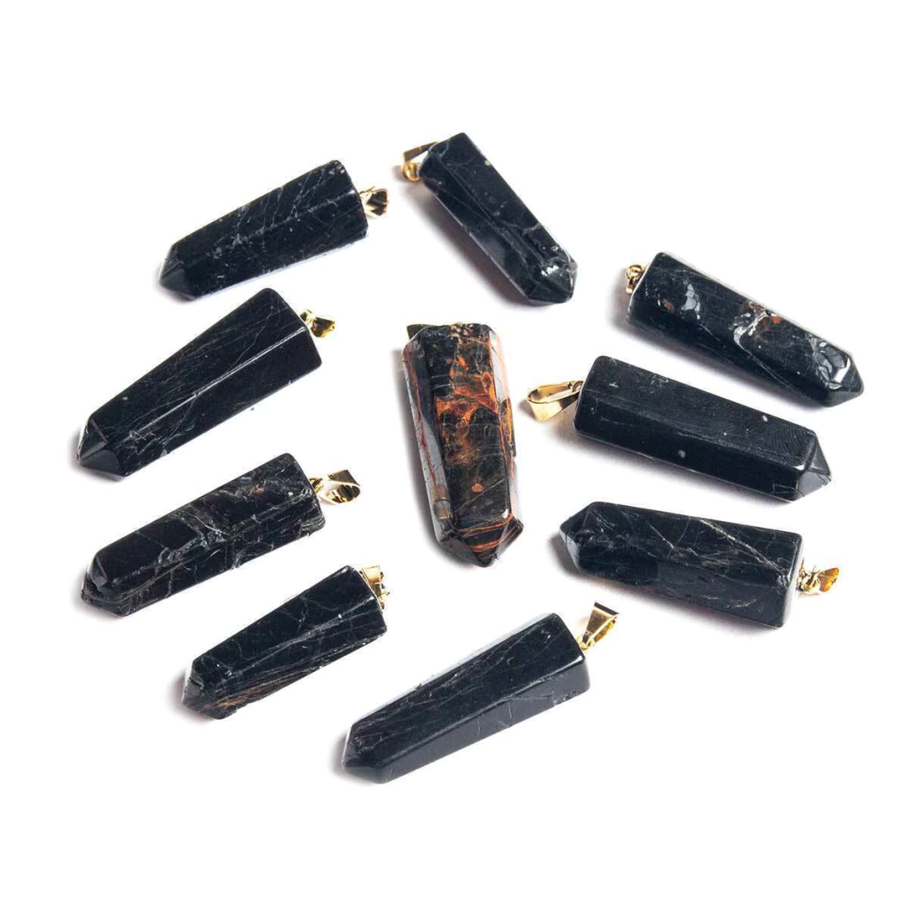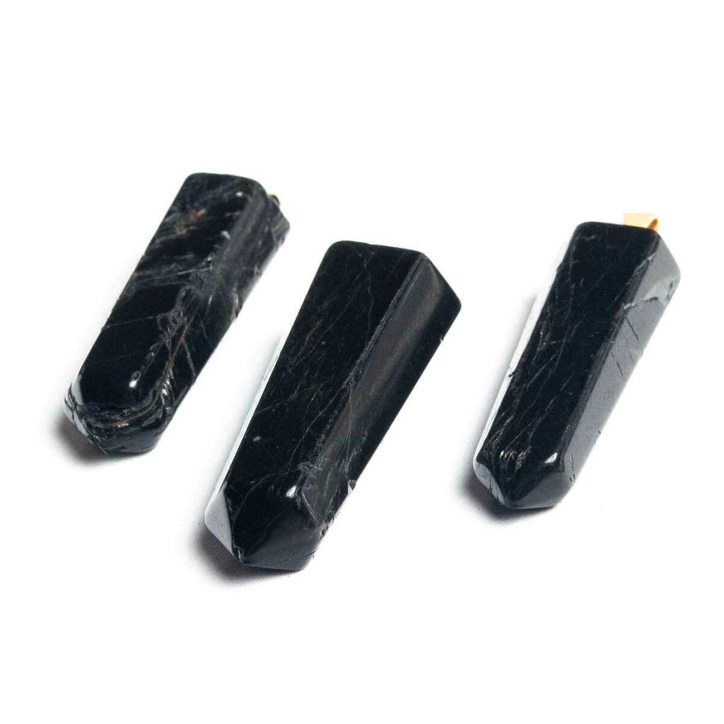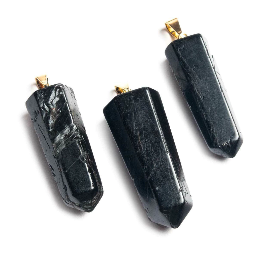 Pingente PONTA de Turmalina Preto pedra de garimpo com lapidação artesanal montado no dourado , ideal para colar e pulseiras, ja vai montado. Obs: Turmalina natural de comum qualidade consequentemente apresenta algumas trincas naturais