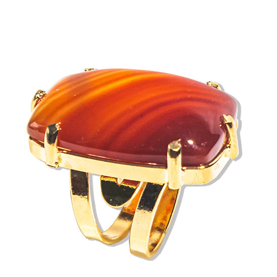 Pacote Atacado 05 Anel Pedra Agata Cornalina ,formato Cabochão Retangular Lapidação Manual aro ajustável ao dedo serve do 14 ao 25 .Ideal para presentar ou mimo para si próprio .