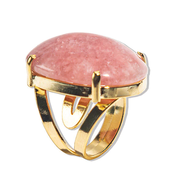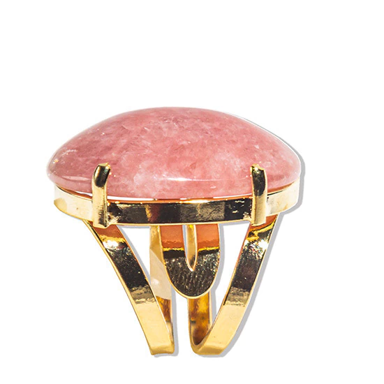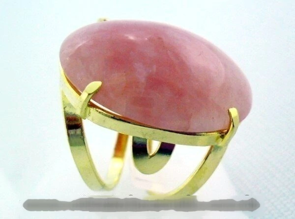 Pacote Atacado 05 Anel Pedra Quartzo Morango Formato Cabochão Oval Lapidação Manual aro ajustavel ao dedo serve do 14 ao 25