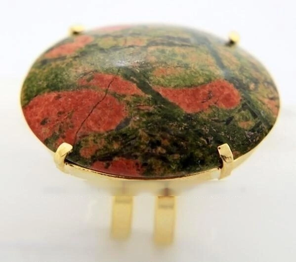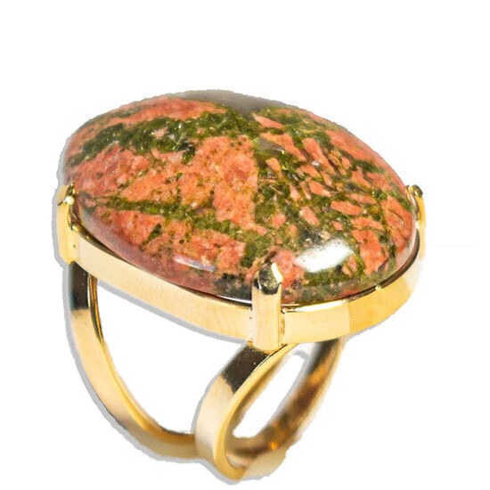 Pacote Atacado 05 Anel Pedra Unakita Formato Cabochão Lapidação Manual Oval aro ajustavel ao dedo serve do 12 ao 30