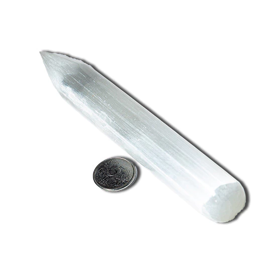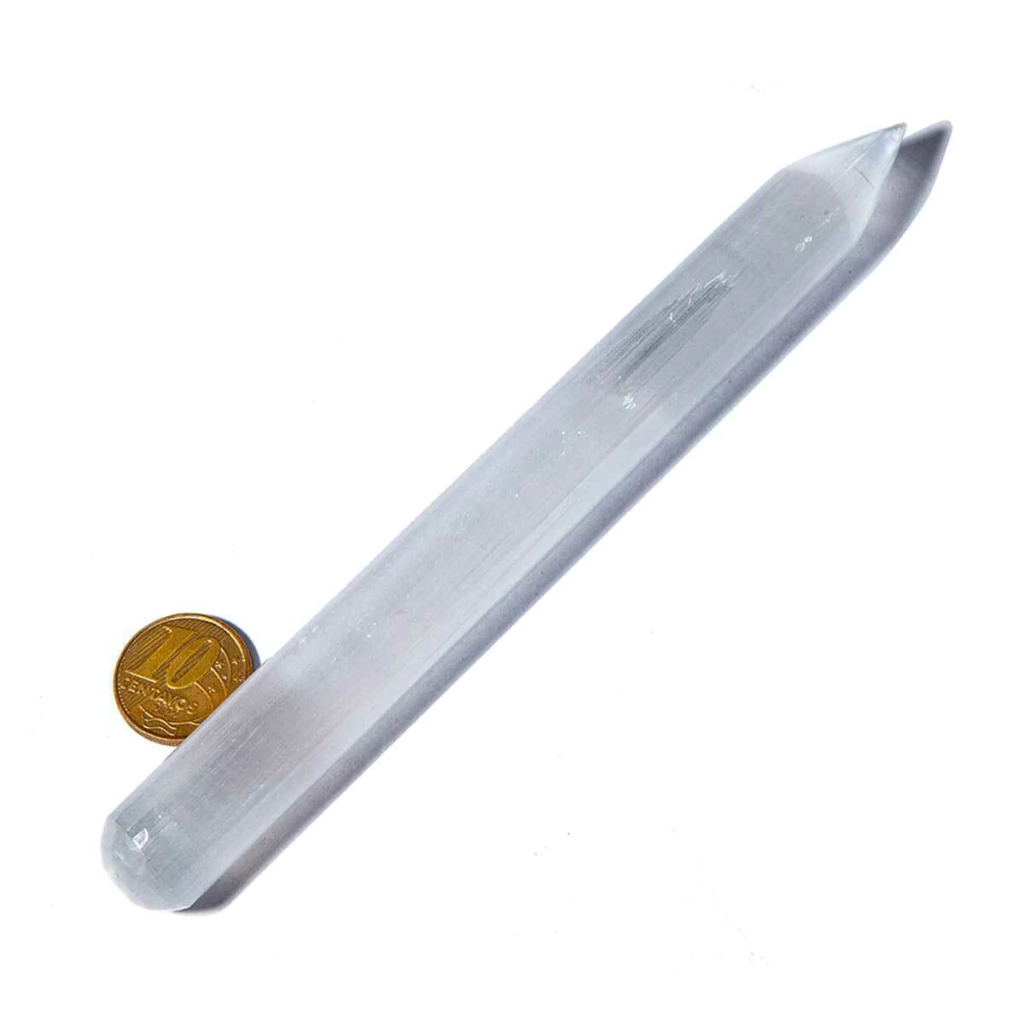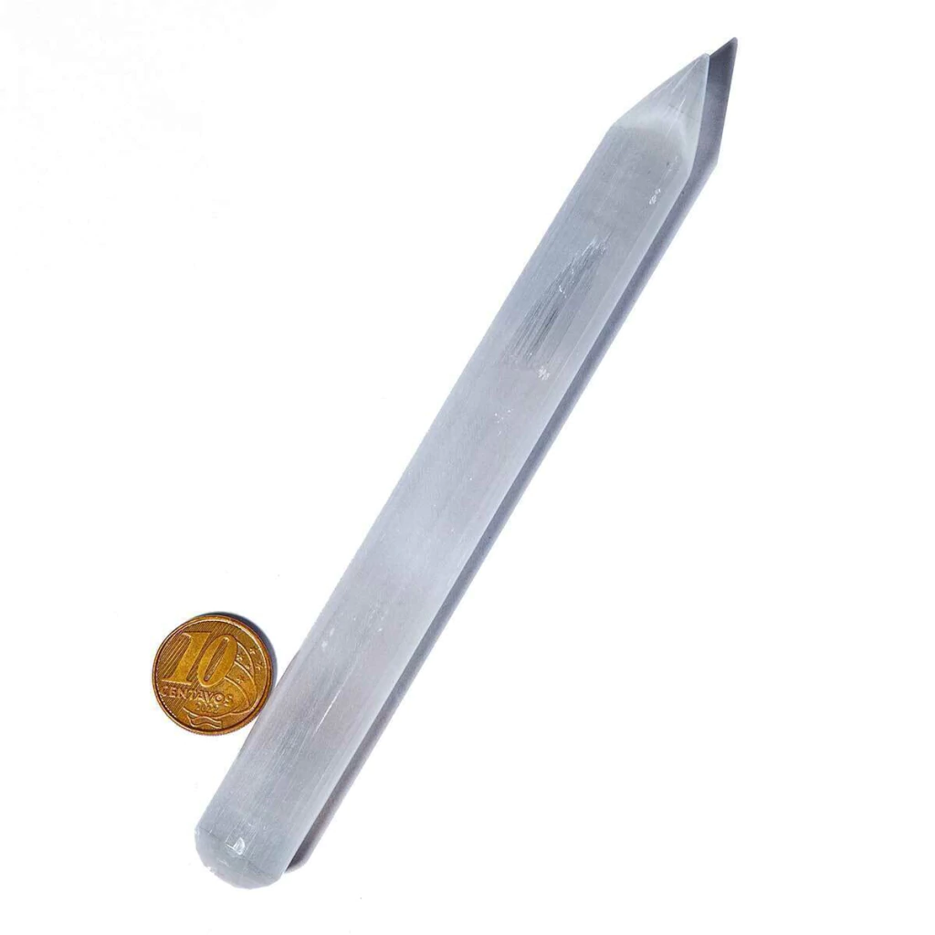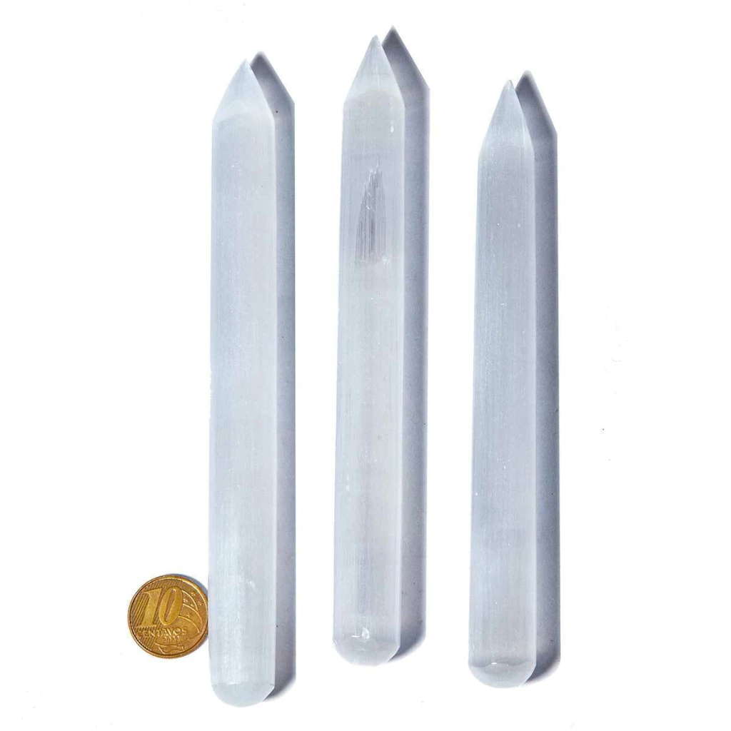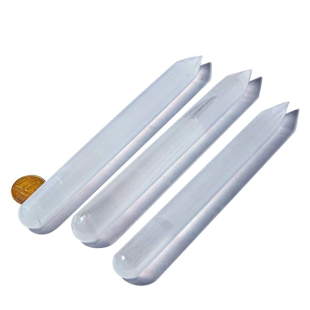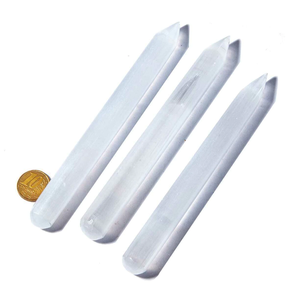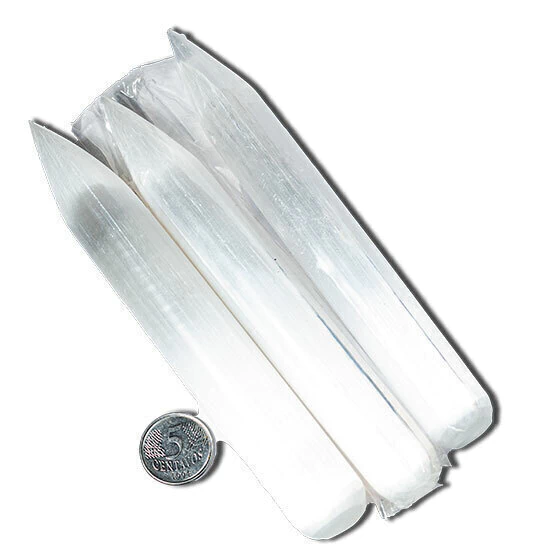 Pacote de ATACADO com 5 Bastão de lápis de selenita: cristal natural com propriedades de limpeza energética e clareza mental. Excelente para meditação e cura.