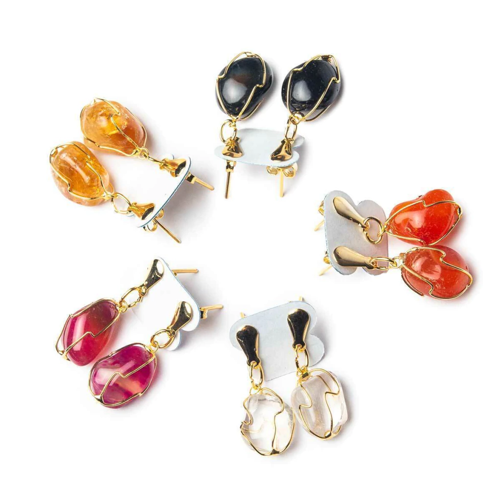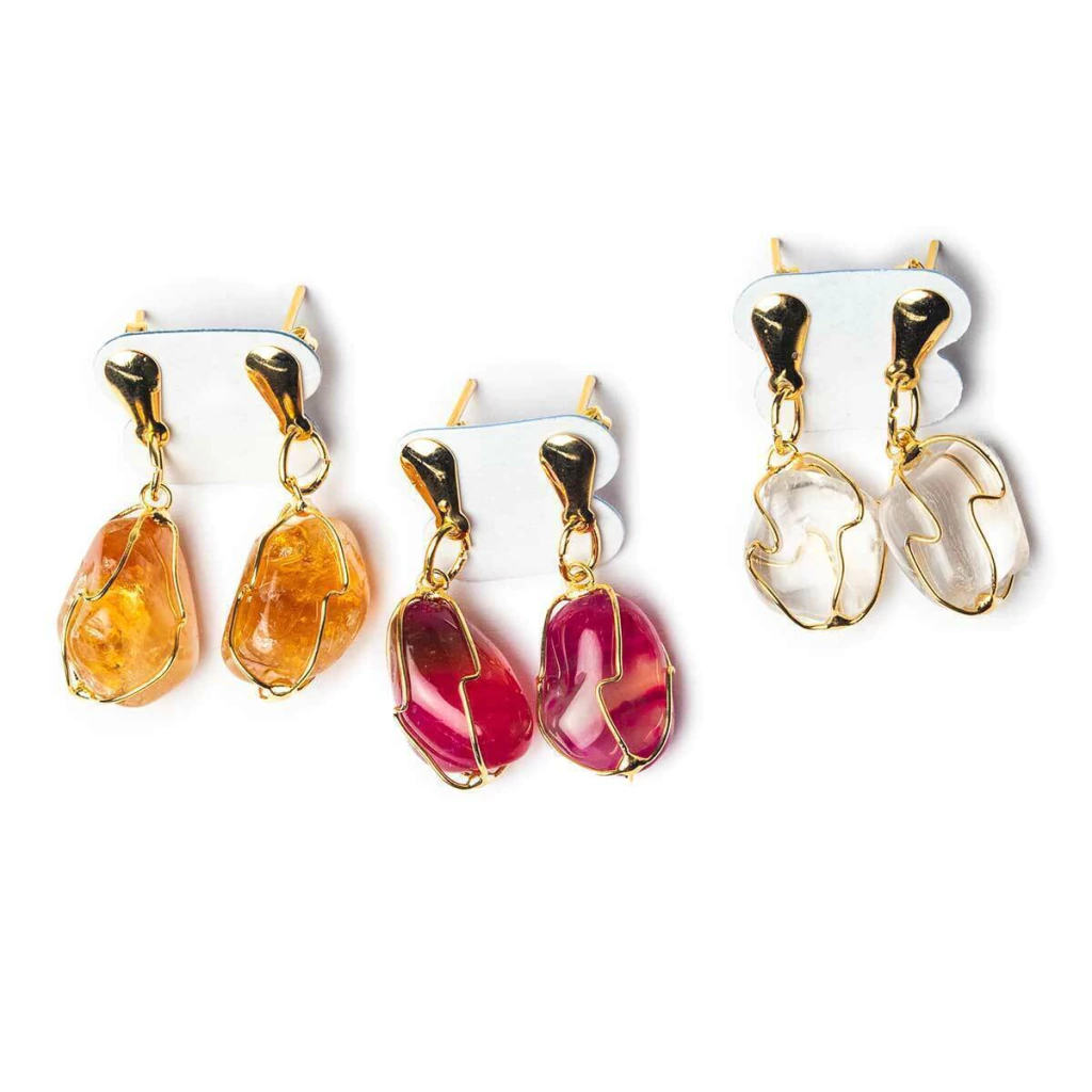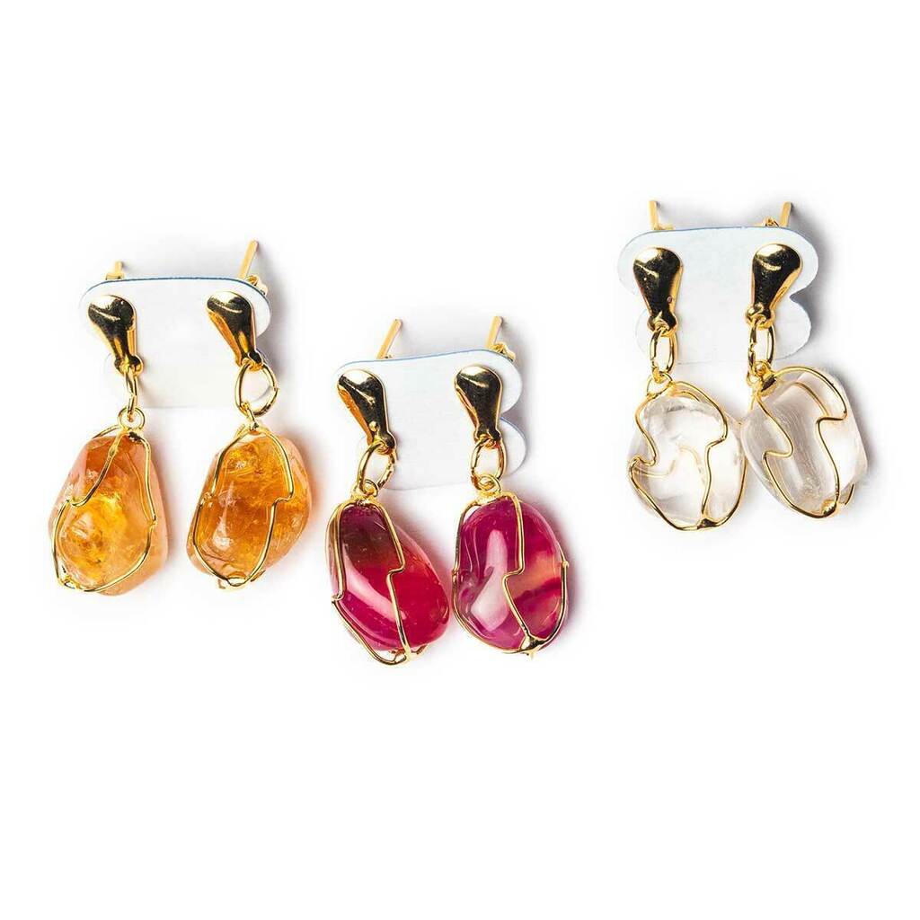 Este brinco com pedras roladas é perfeito para quem deseja um toque rústico e artesanal em suas joias. Cada peça é única devido à variação natural das pedras, tornando seu look ainda mais exclusivo. Seja para uso próprio ou revenda, essa joia é uma escolha versátil que complementa qualquer estilo.