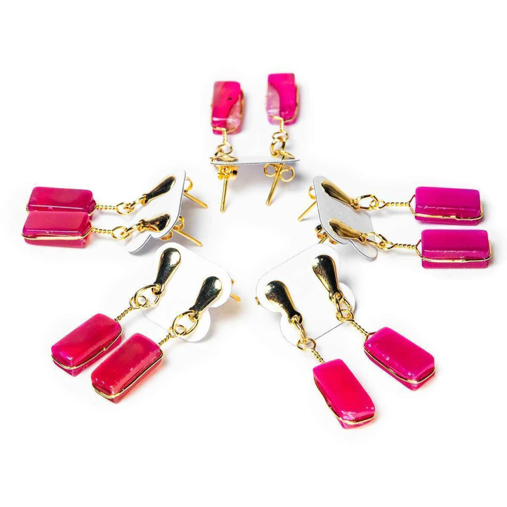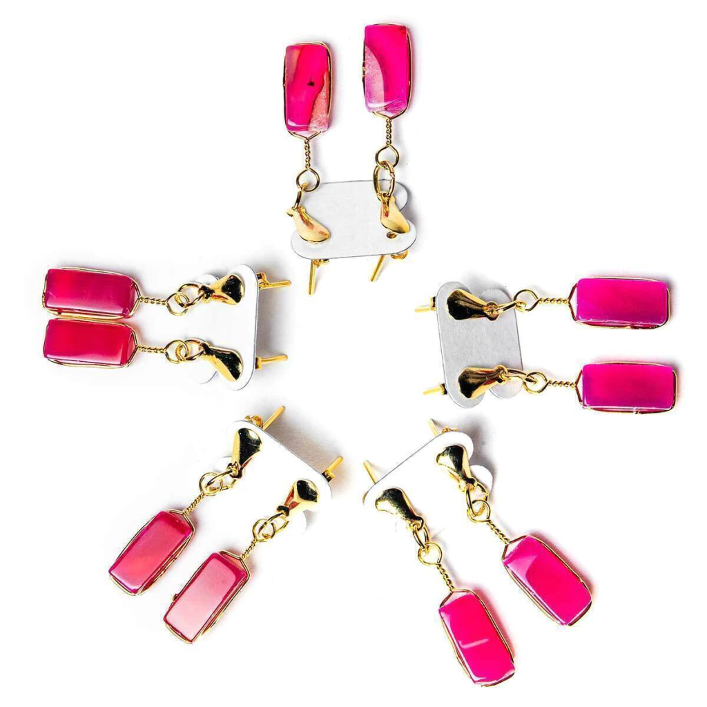 05 Brinco Pedra Agata Rosa Lapidado Retângulo Ranhurado com pino e tarracha dourado, lapidação manual totalmente artesanal com polimento em vibrador a montagem é feita em banho flash dourado