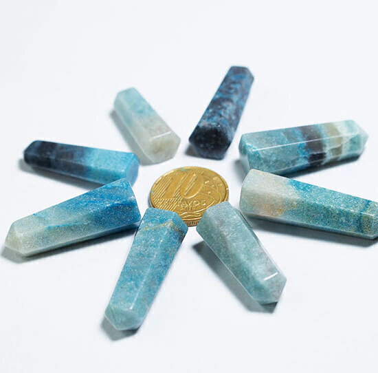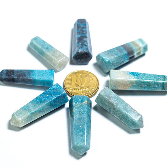 Pontinha Gerador Trolita Azul Sextavado Tamanho 3Cm Pedra Natural, Mini Ponta Pedra Trolita Azul Gerador de energia Pontinha com boa lapidação e bom brilho, pedra Natural muito utilizado em mandalas, energização por canalizar a energia orgone