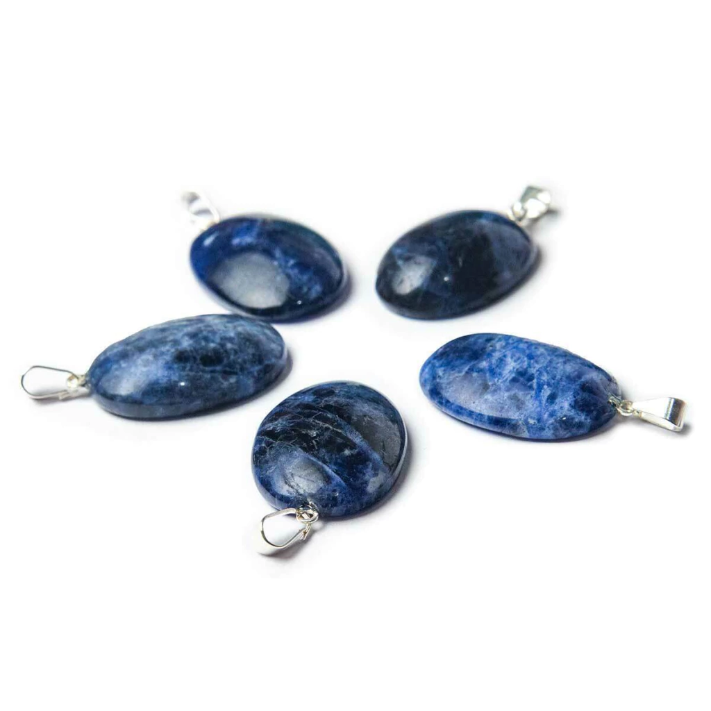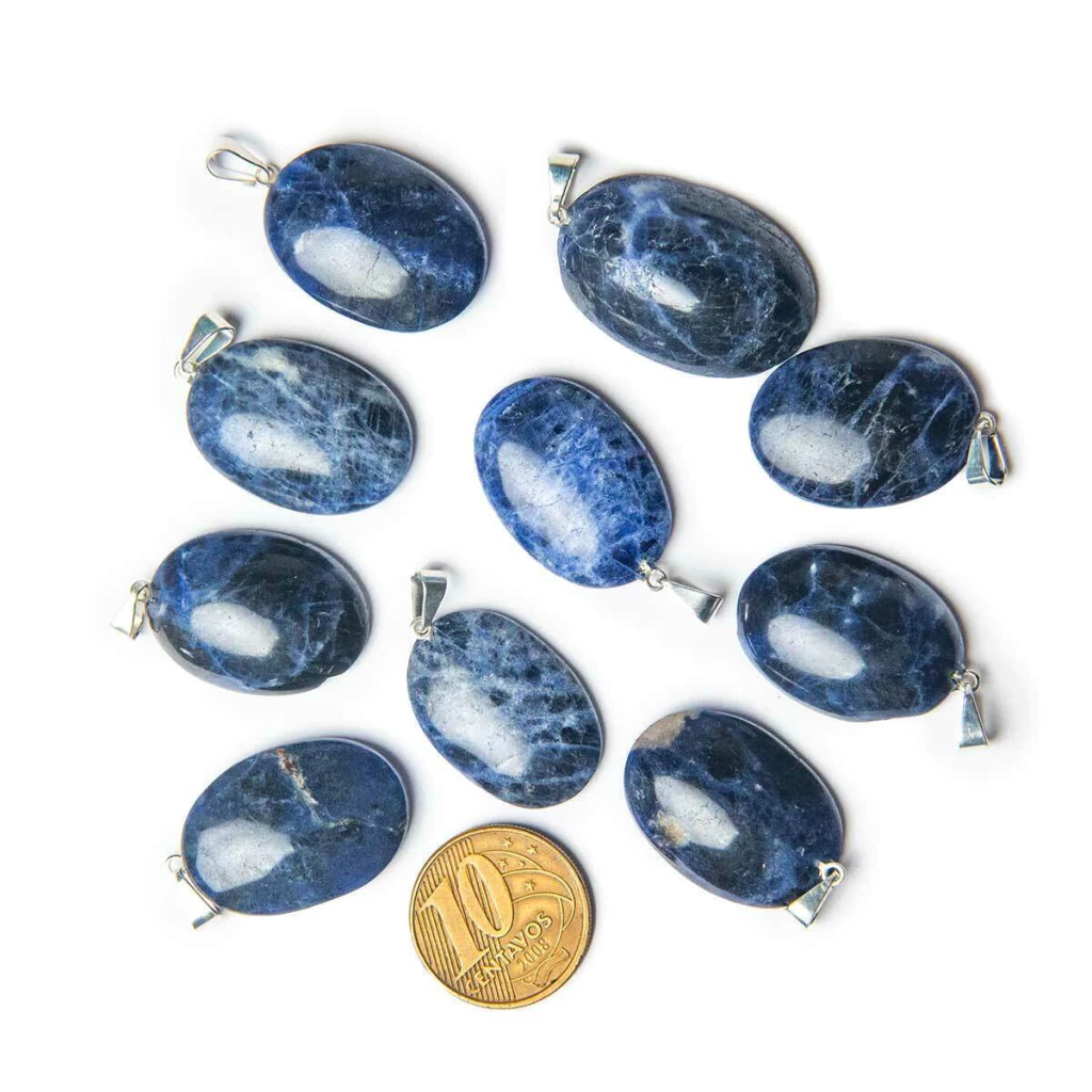 Pingente Cabochão Pedra Sodalita, Lapidação Cabochão Oval, mineral de garimpo pedra com intenso cor Azul, Mineral natural
