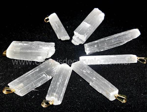 05 Pingente Canudo Selenita Tamanho Medio IDEAL PARA REVENDA, MARAVILHOSO PREÇO DE ATACADO Pedra Bruta montado Pino com Banhado Dourado e perinha para passar o cordão Pedra Genuina com origem garimpo Canudo Selenita Bruto sem Nenhum tratamento peça delicada não machuca ao usar