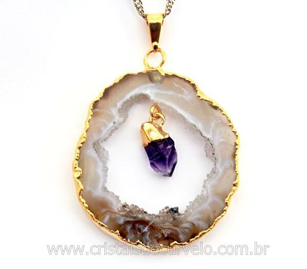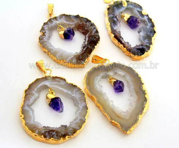 CORTE DAS PEDRAS: Chapa de Geodo com Ponta Ametista Movel