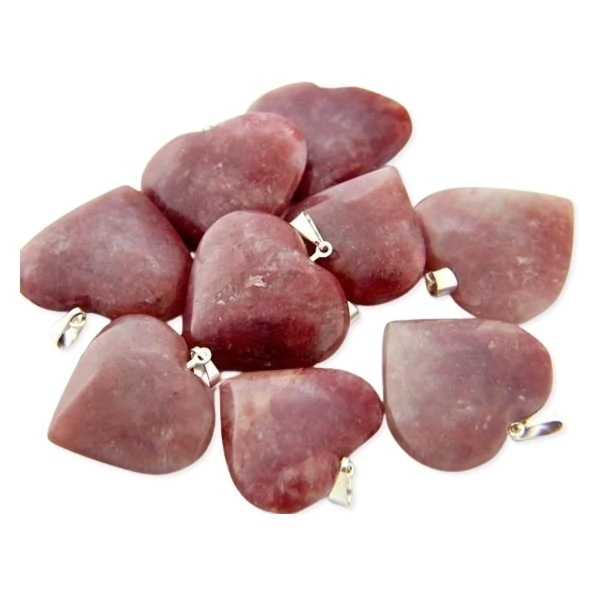 Pingente Coração Pedra QUARTZO Morango Natural de garimpo Lapidação Coração, ideal para colar e pulseiras, ja vai montado Prateado