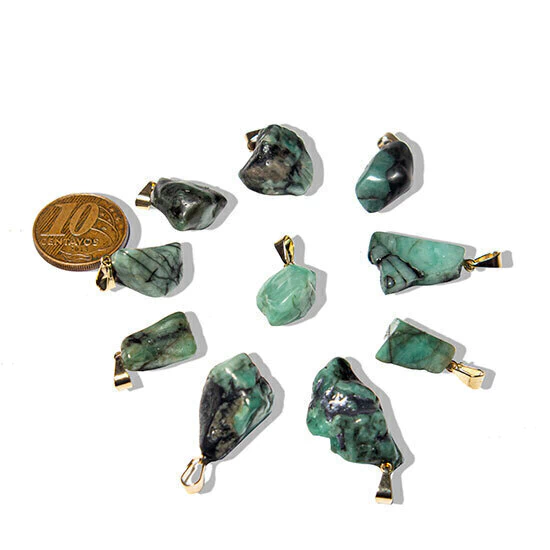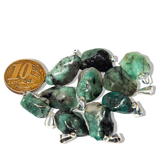Pingente Pedrinha rolado Esmeralda natural mineral verdadeiro de garimpo exelente preço, lapidação rolado, montagem com pino e perinha PRATEADO, recomendado para pulseiras ou crianças