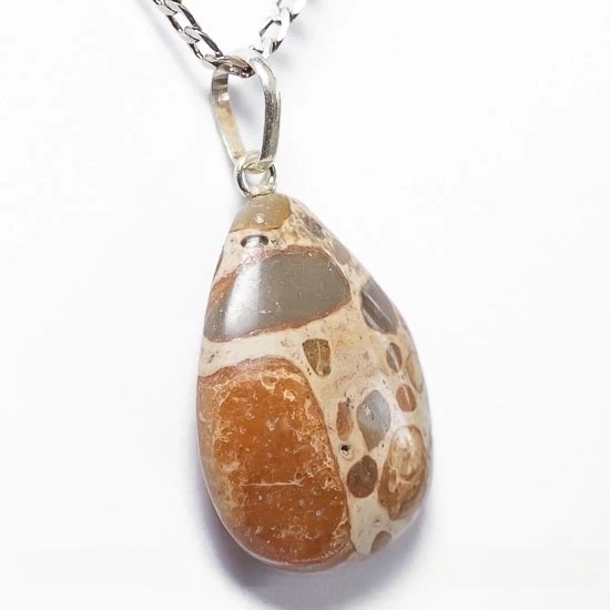 Pingente Gota pedra Jaspe Leopardita, Pedra natural de garimpo com Montagem na Prata 950 ( PRATA DE LEI) Pino e Perinha com furo na pedra genuina ,com origem de garimpo e com lapidação e montagem manual .