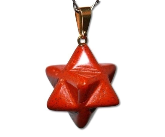 Pingente Merkabah pedra natural Jaspe Vermelho de garimpo pedra com exelente lapidação em formato de estrela merkabah. Montagem Dourado.