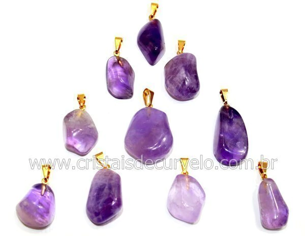 3 Pingente Pedrinha Ametista exelente preço, lapidação rolado em vibrador montagem com pino e perinha Flash Dourado, recomendado para pulseiras ou crianças