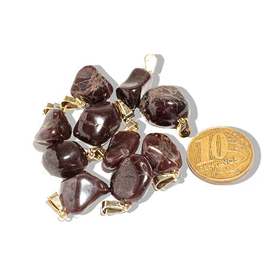 PEDRINHA GRANADA Pingente Pedrinha Rolado GRANADA Natural mineral verdadeiro de garimpo excelente preço, montagem com pino e perinha banhado em prata, recomendado para pulseiras ou crianças