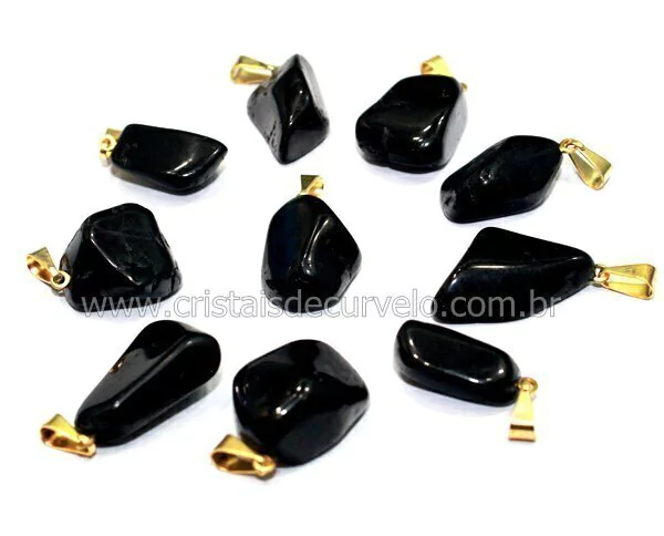 3Pingente Pedrinha Turmalina Preta exelente preço, lapidação rolado em vibrador montagem com pino e perinha Flash Dourado, recomendado para pulseiras ou crianças