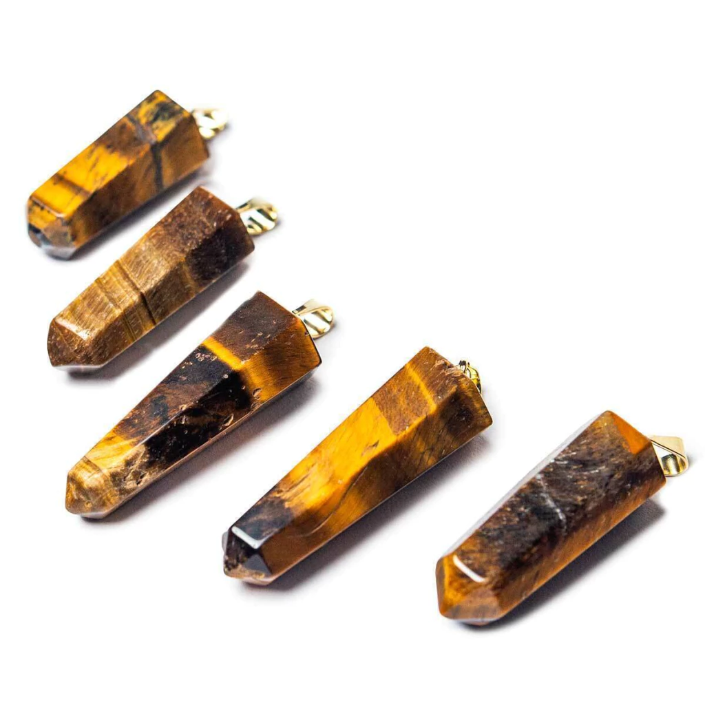 Pingente PONTA de Olho de Tigre pedra de garimpo com lapidação artesanal montado no dourado , ideal para colar e pulseiras, ja vai montado.