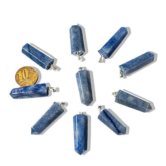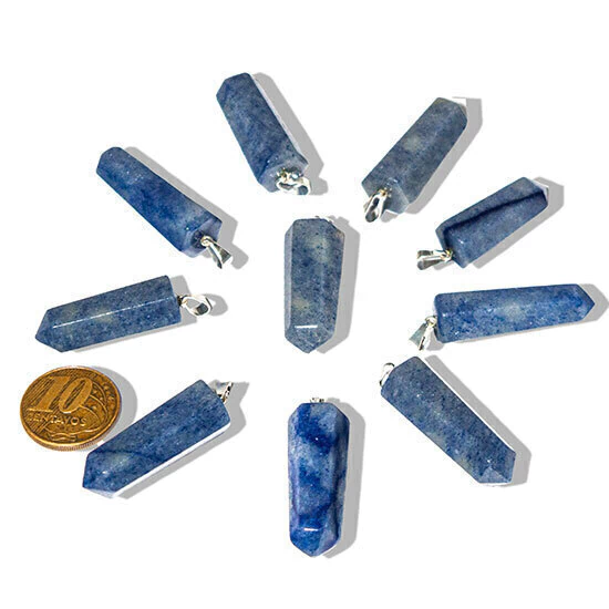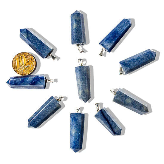 Pingente Pontinha Pedra Quartzo Azul Presilha e Pino Prateado, Pontinha Sextavada Pedra Quartzo Azul de garimpo com lapidação artesanal montado com pino e Presilha Prateado, ideal para colar e pulseiras, ja vai montado.